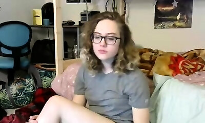 Sandy-haired she-male in slip-ons shows off small dick and shaved