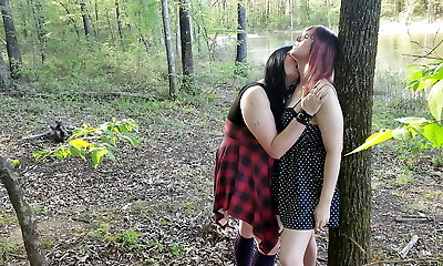 трансгендерная девушка-гот трахается в жопу с незнакомцем в лесу