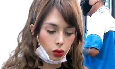 Asian erotic tranny spreads her ass cheeks and fucks a toy